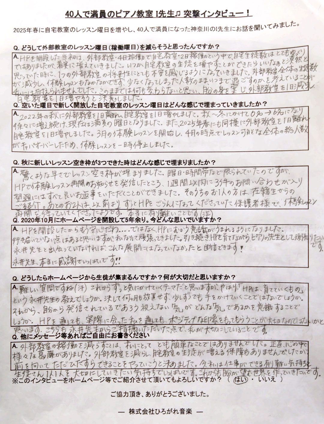 株式会社ひろがれ音楽では、ピアノ教室のホームページ制作と集客サポートコンサルを行っています。